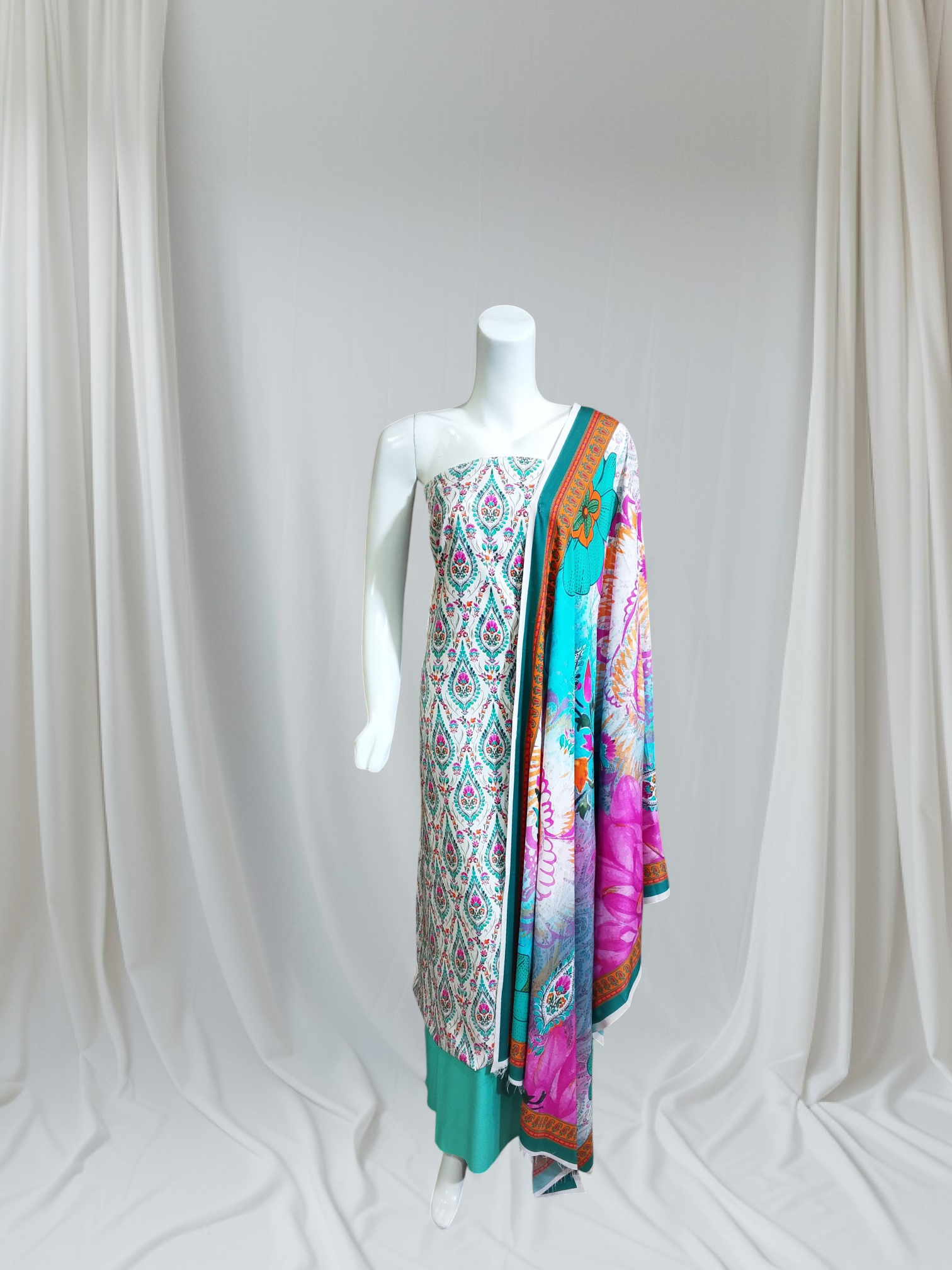 • Trousers (Unstitched): Coordinated fabric for stitching trousers or shalwar to your preferred style.